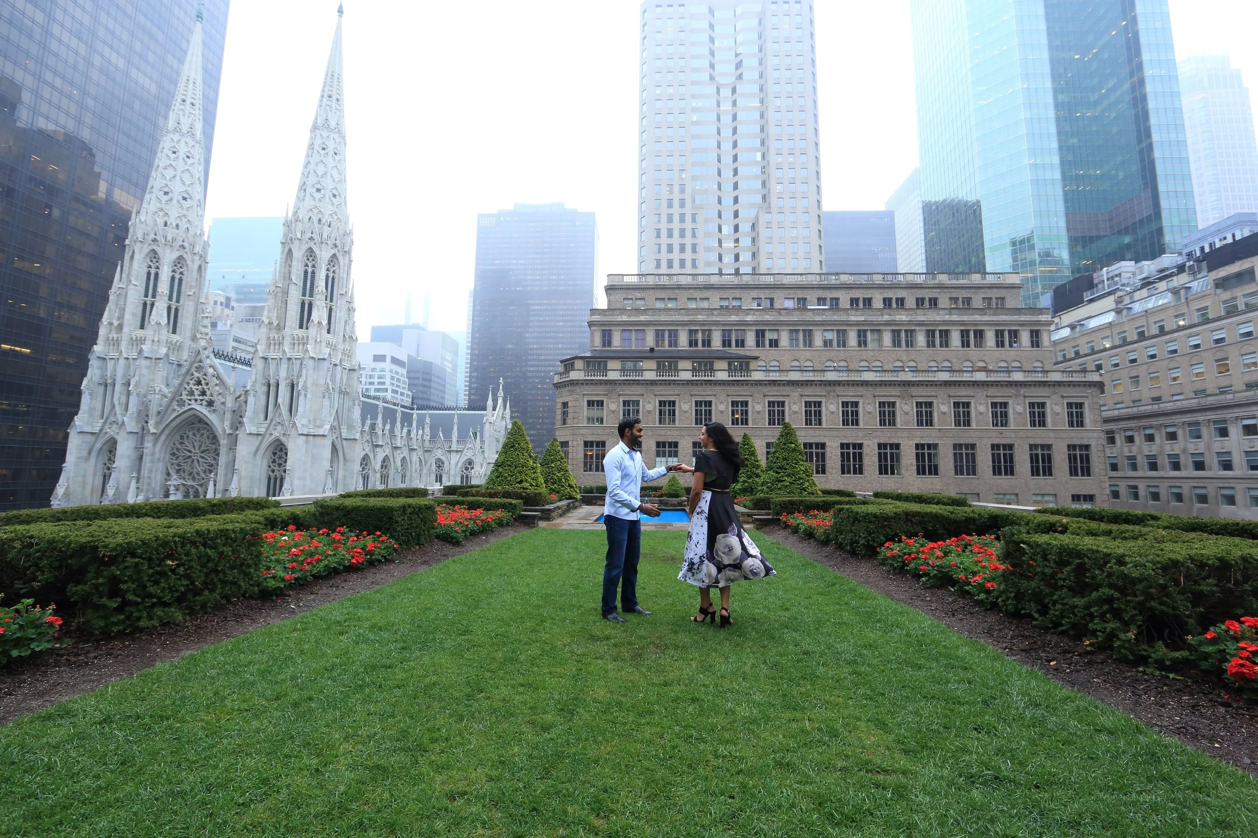 We spent some time taking engagement photos on the outdoor terrace of the Rainbow Room, then got some precious moments at 620 Loft & Garden before heading to Dumbo, Brooklyn for more photos. Turns out Prish wasn’t done yet, he had one more huge surprise up his sleeve.